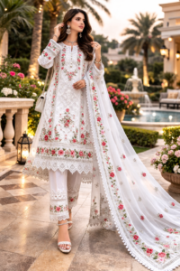 This 3-piece suit is perfect for outside wear, family functions, casual meetups, festive gatherings, and daytime celebrations. Its gallery-worthy elegance makes it an excellent choice for women who appreciate detailed craftsmanship and premium quality fabric.